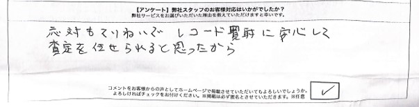 応対もていねいでレコード買取に安心して査定を任せられると思ったから。